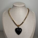 Colar Dourado Coração Resina Preto